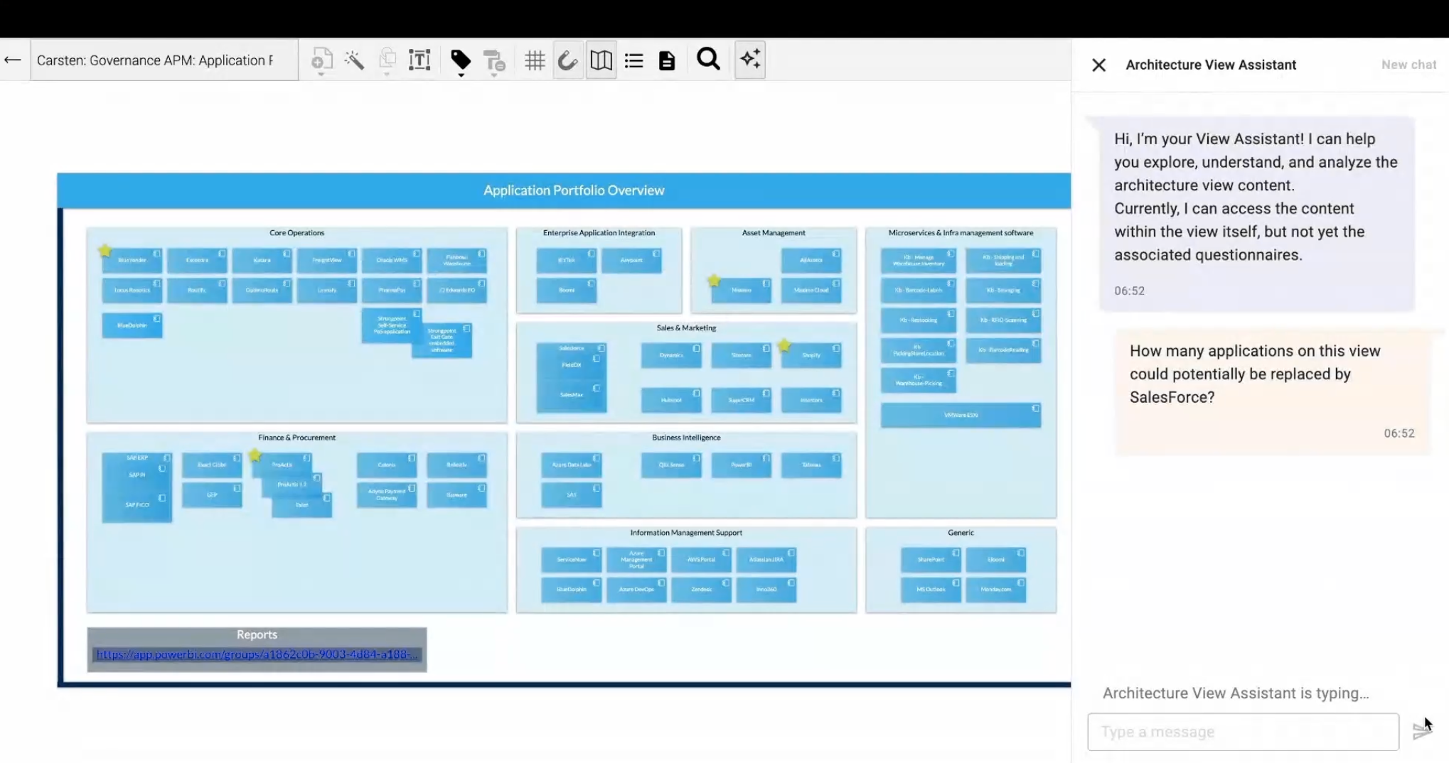 BlueDolphin’s Architecture View now has an integrated AI Assistant that helps understand and analyze architecture views without technical knowledge. Whether you are a seasoned enterprise architect or just starting, the AI Assistant is here to make your work faster, clearer, and more intuitive.
